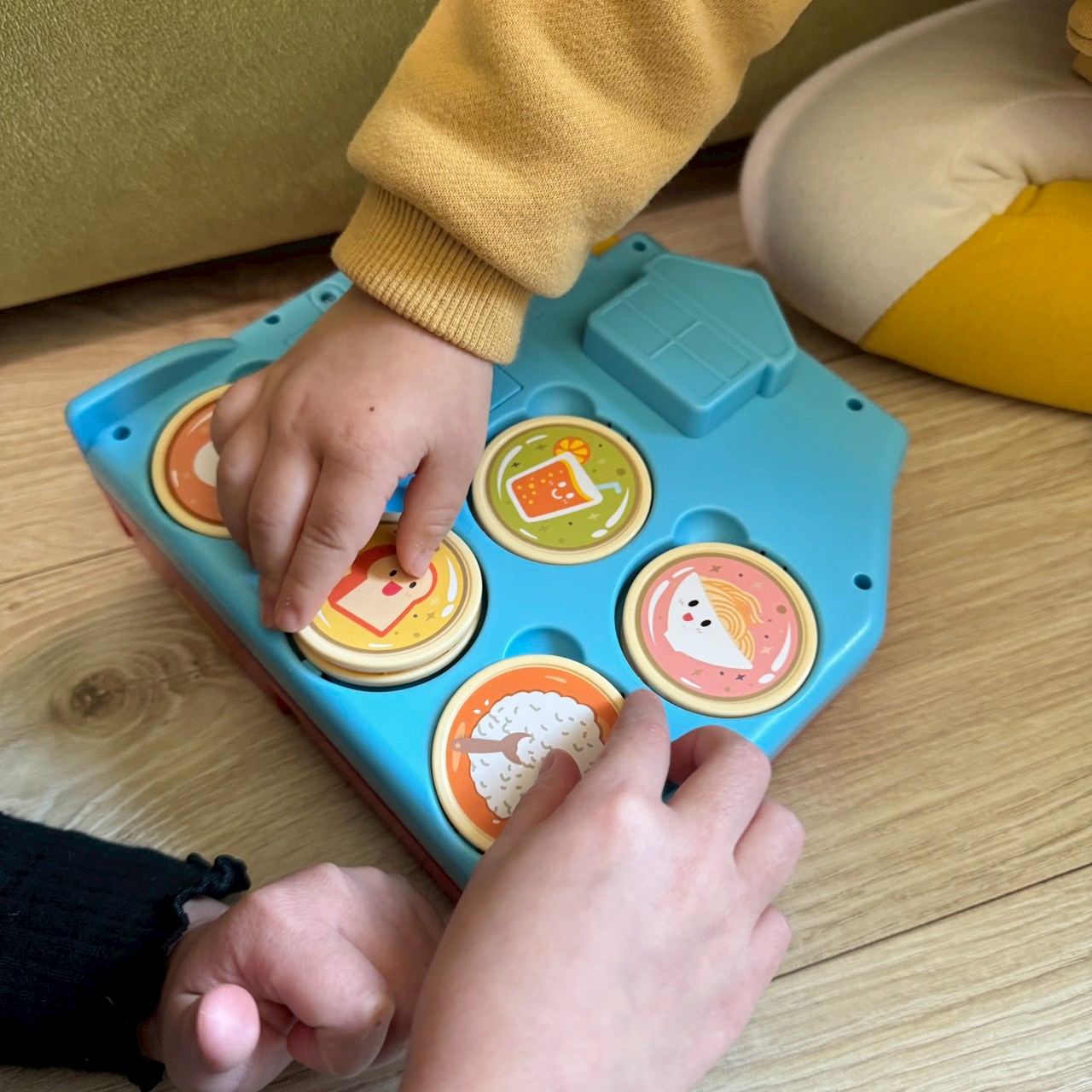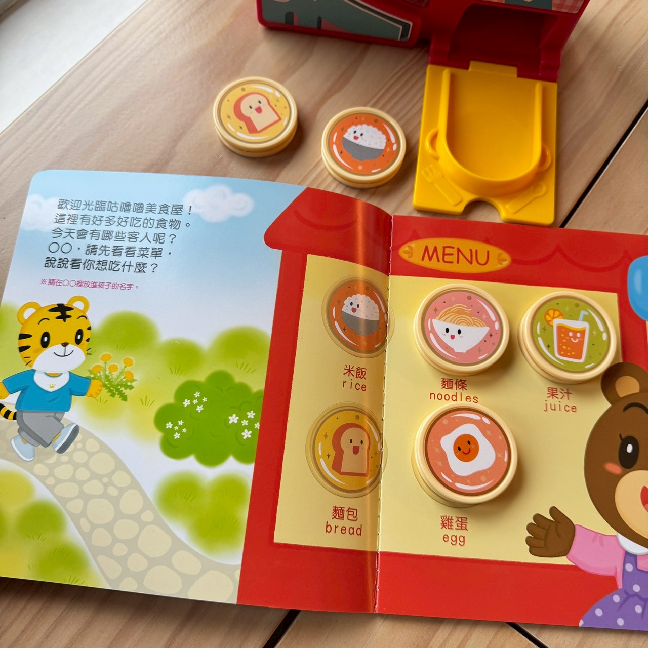 這套組件裡最讓孩子瘋狂、點名率最高的,絕對就是這台咕嚕嚕 IC 雙語美食屋,讓孩子在玩樂中把聲音與具體物品連結起來。