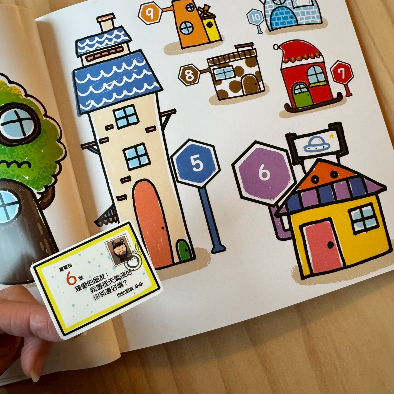 例如玩郵差遊戲時,我們可以不只唸文字,而是說:「請幫郵差把 6 號的信送到綠色的樹屋裡。」