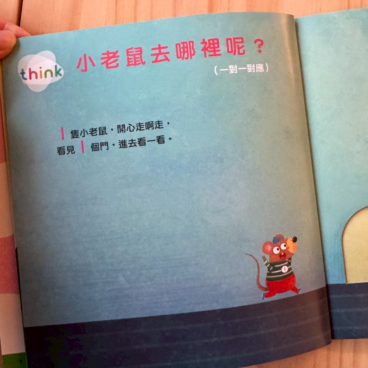 小老鼠鑽門洞好可愛,也是一對一對應很好玩的互動遊戲。