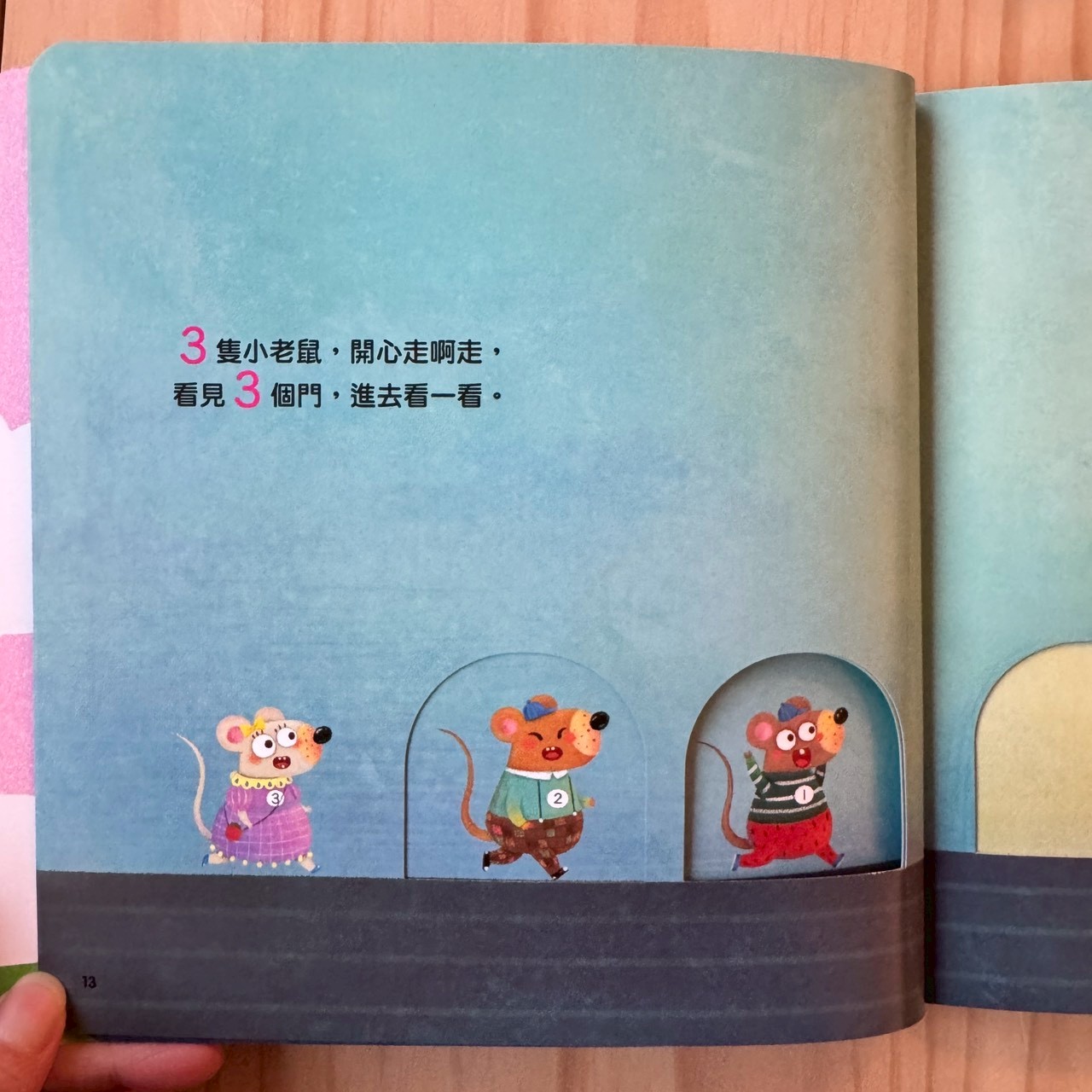 請孩子用手數數看有幾隻老鼠,這是在建立大腦裡的數感量,對於未來的邏輯發展非常有幫助。