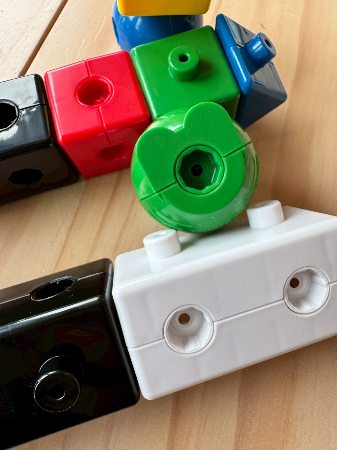 近看積木的接口,特殊的八角形設計讓孩子在任何角度都能輕鬆拼組。