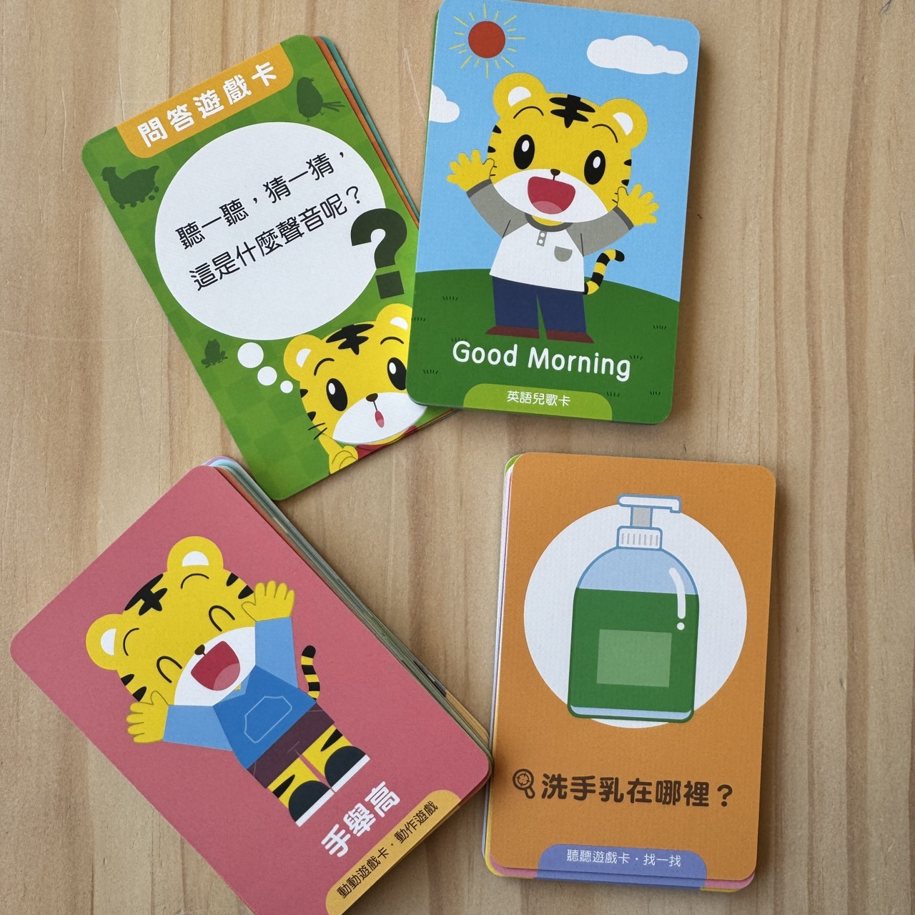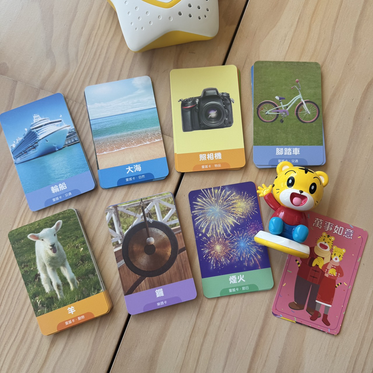 雙面皆可感應,包含動物、交通、情緒、生活動作等多種類別,不是單純的識字卡。