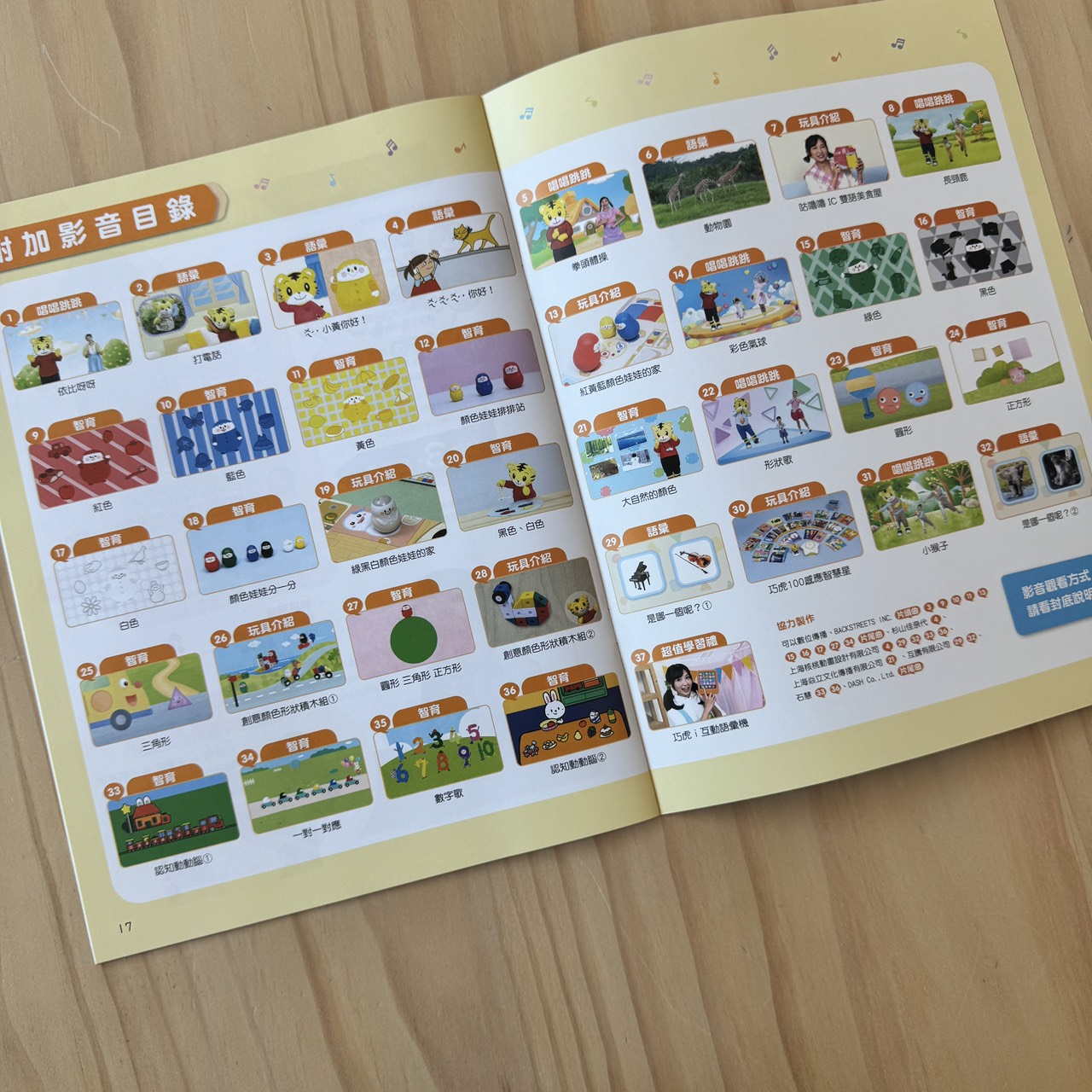 當然還要附上巧虎最經典的影音內容,總共 37 段,涵蓋了這套組件所有的主題,從點餐、認顏色到數數,讓孩子在節奏感十足的畫面中邊玩邊聽。
