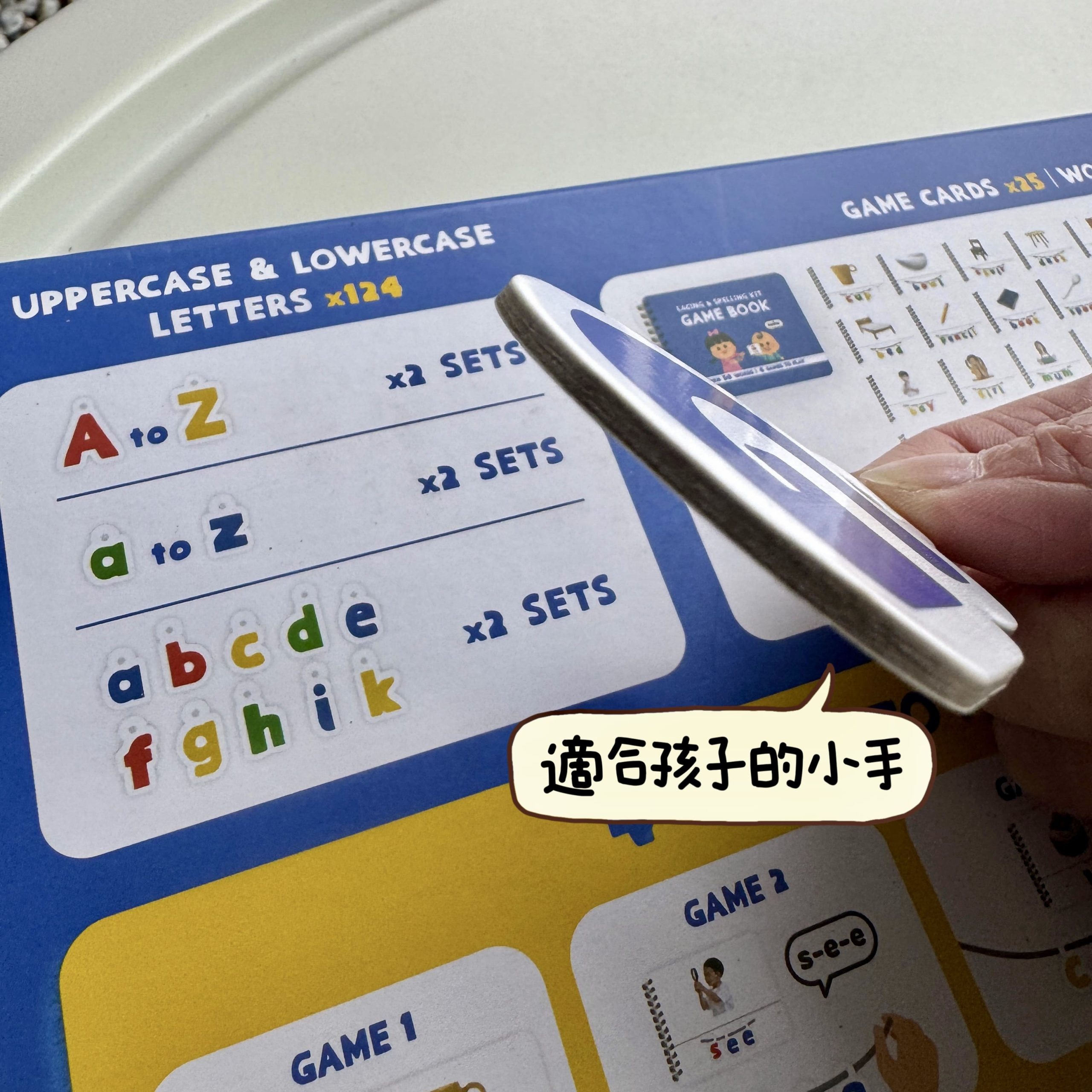 每個字母都設計成易握的小型卡片,適合孩子的小手
