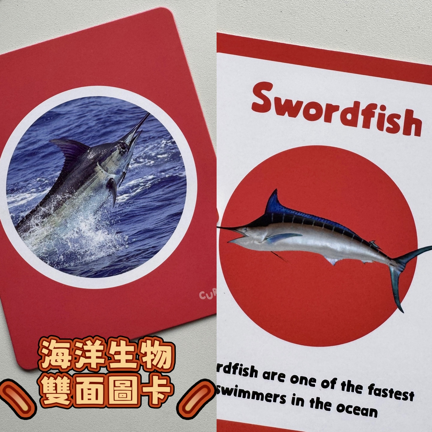 內含25張海洋生物雙面圖卡