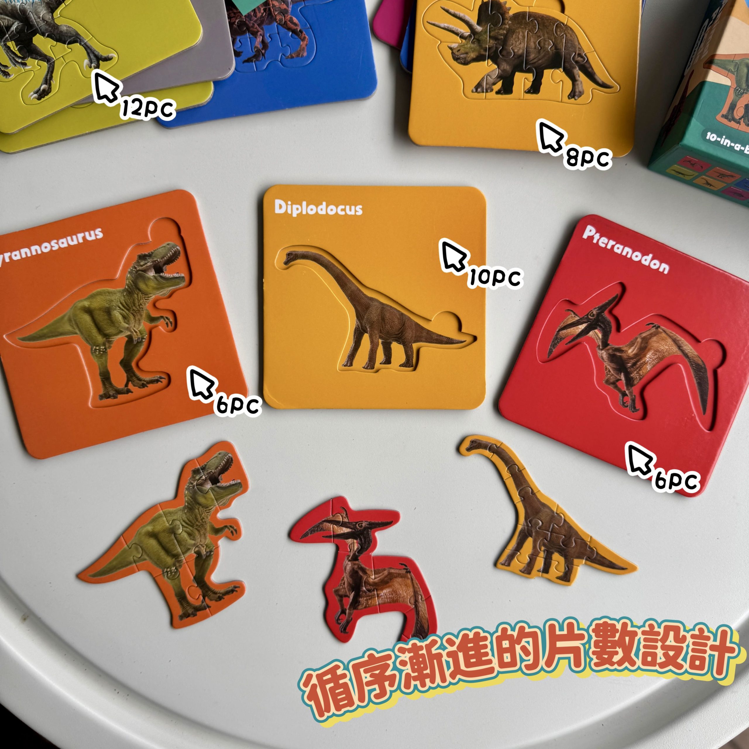 拼圖有6、8、10、12片四種片數設計