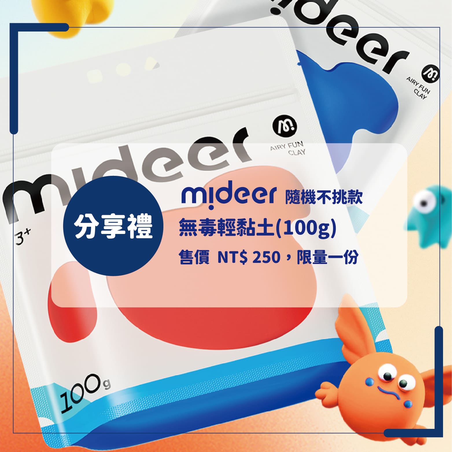 🎁大V團特別爭取到限量一份分享禮:【mideer】無毒輕黏土(100g)(售價:$250)