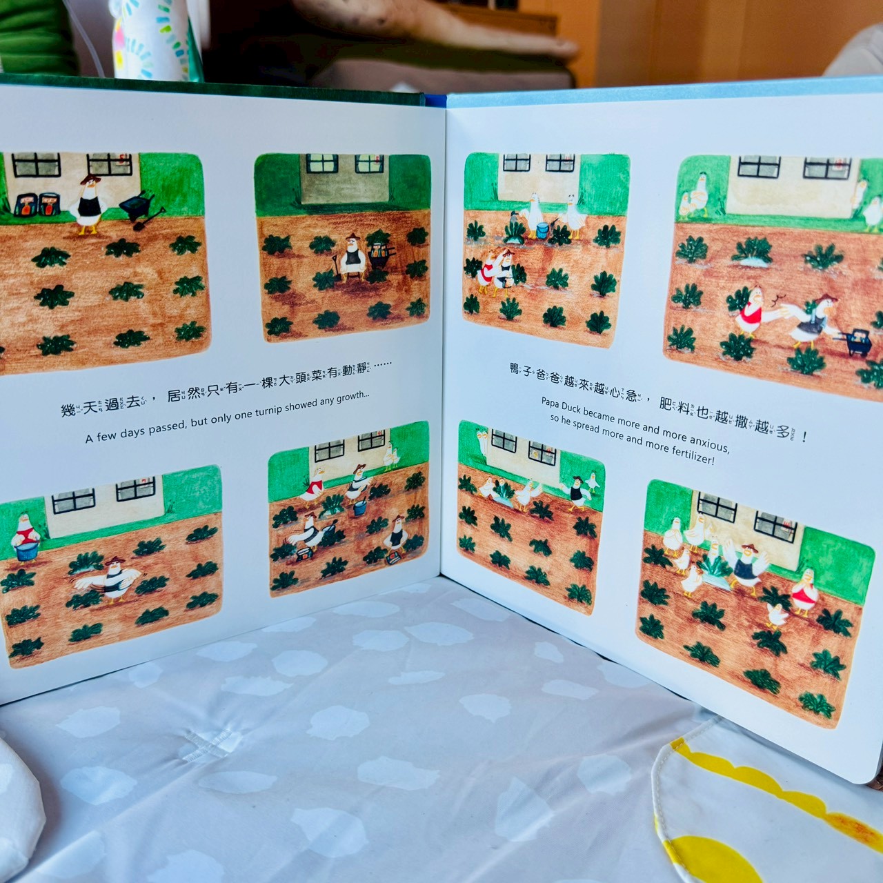 天氣越來越熱,大頭菜卻長得不好。鴨子爸爸開始急了。