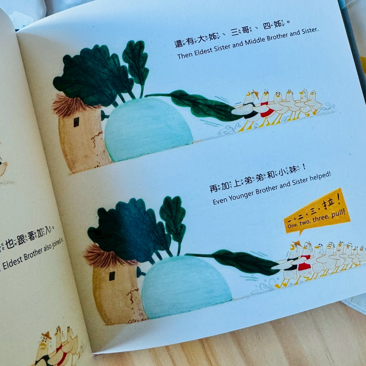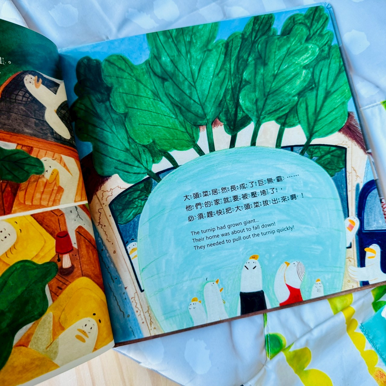 但在《鴨子家的大頭菜》裡,今天要拔的不是蘿蔔,而是一顆被鴨子爸爸照顧得非常、非常用心的大頭菜。
