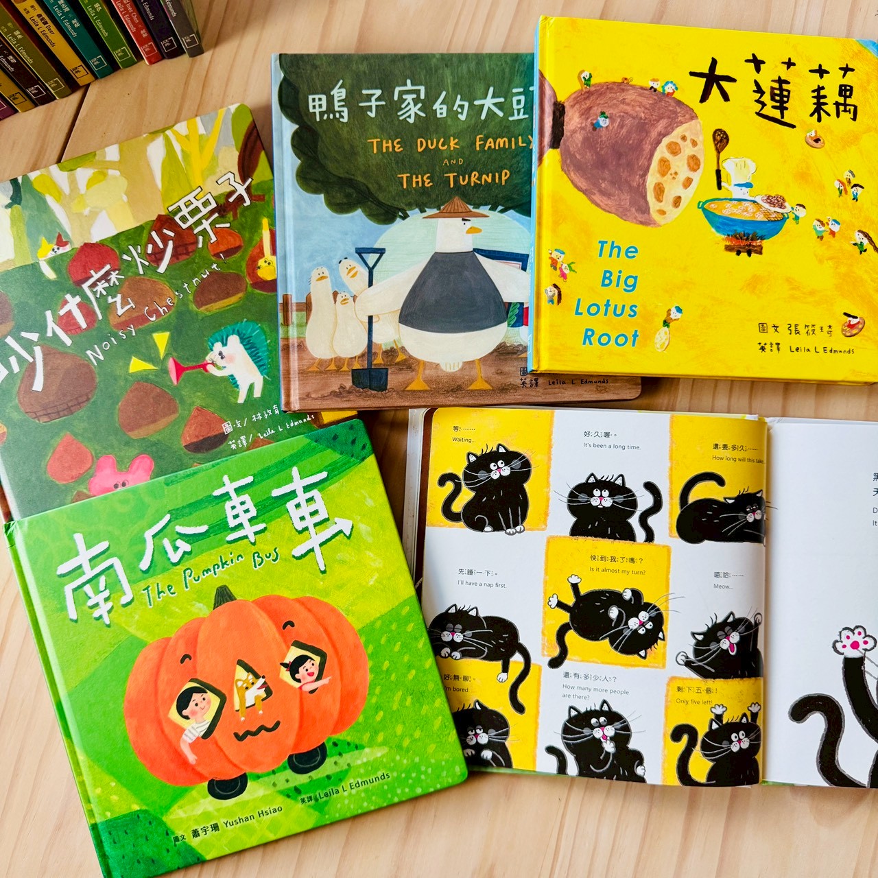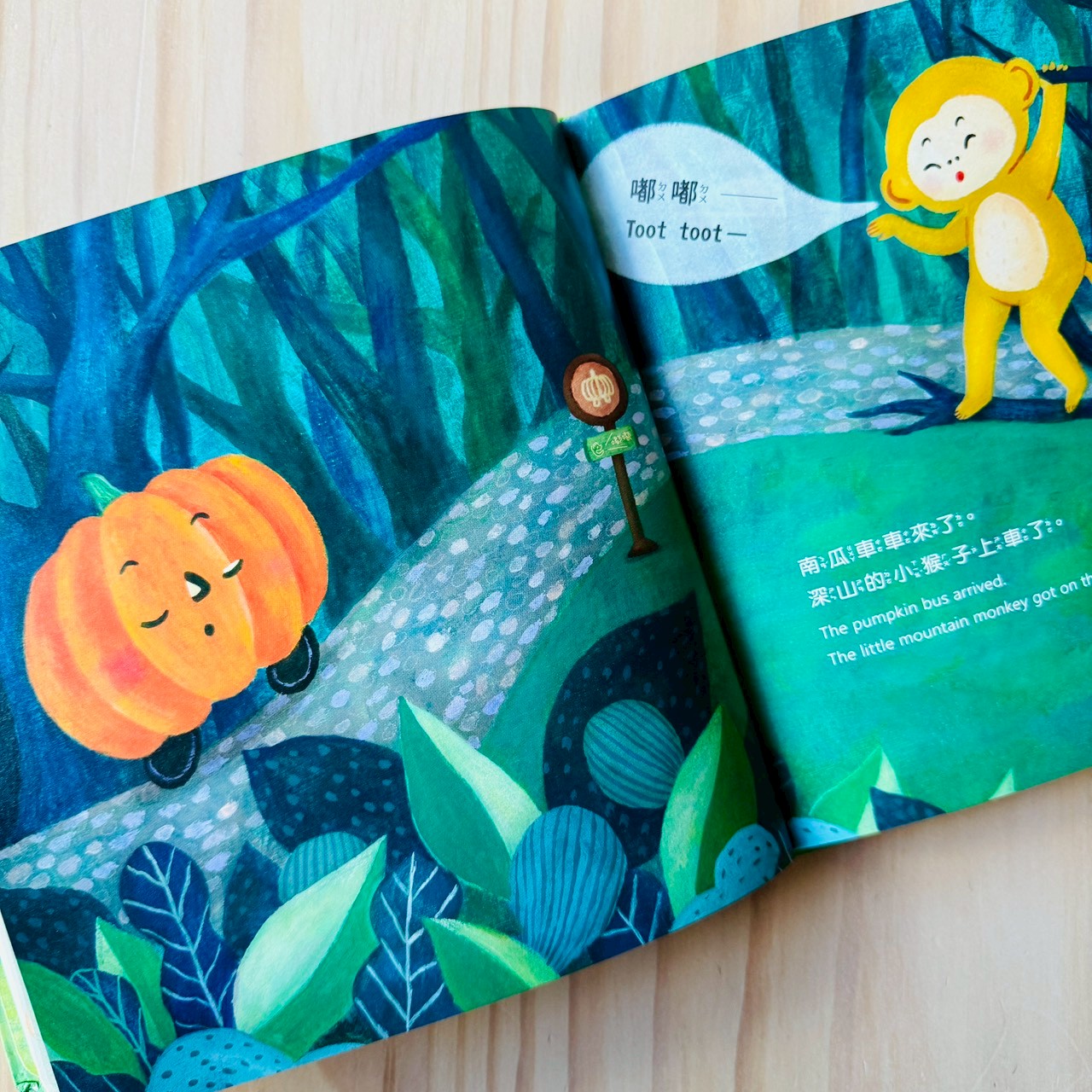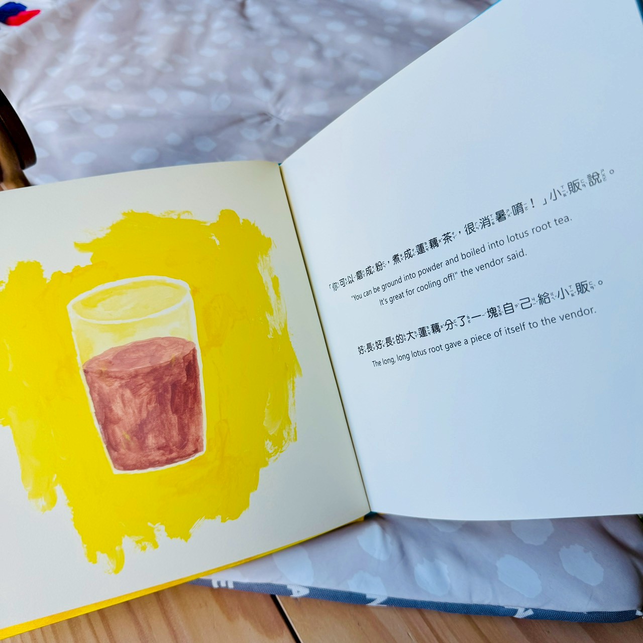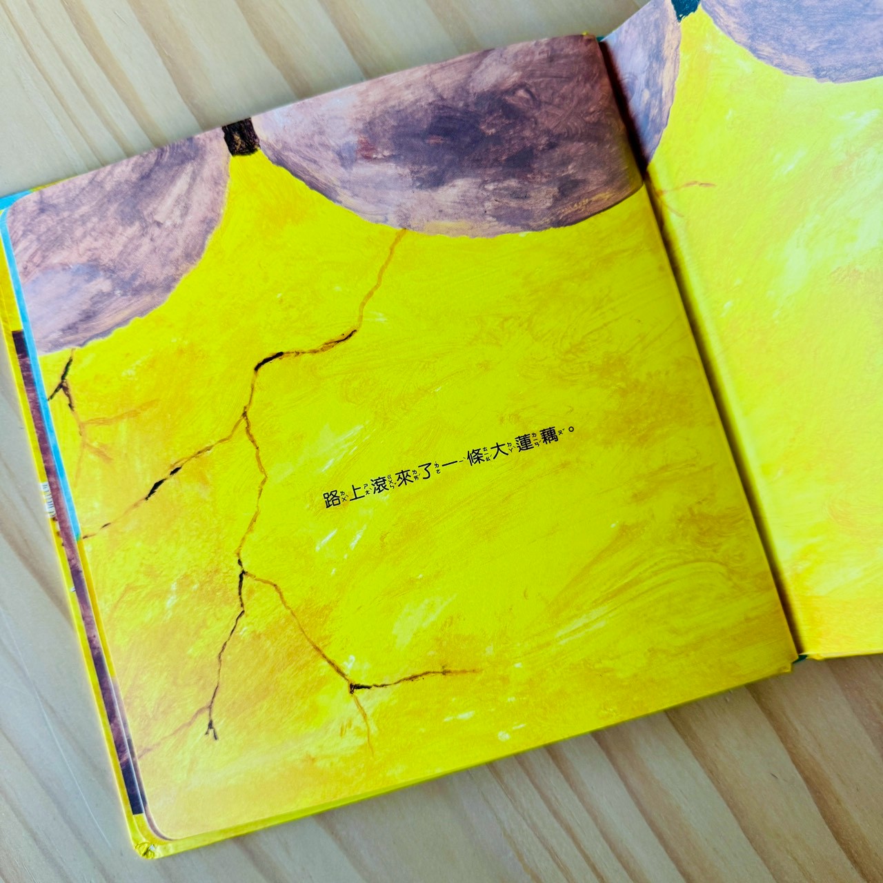 蓮藕不只是一節一節被吃掉的菜,而是一整條藏在泥裡、最後還能開出花的存在;大頭菜讓孩子立刻想到《拔蘿蔔》,一個人不行,就找朋友一起;栗子一定要炒才會熟,卻被孩子聽成「吵」,乾脆把吵吵鬧鬧變成一起長熟的過程;南瓜圓圓的、能裝人,直接變成一台載著大家去旅行的車;花生用孩子一聽就懂的諧音梗,聊倒楣、等待,還有慢慢變好的可能。