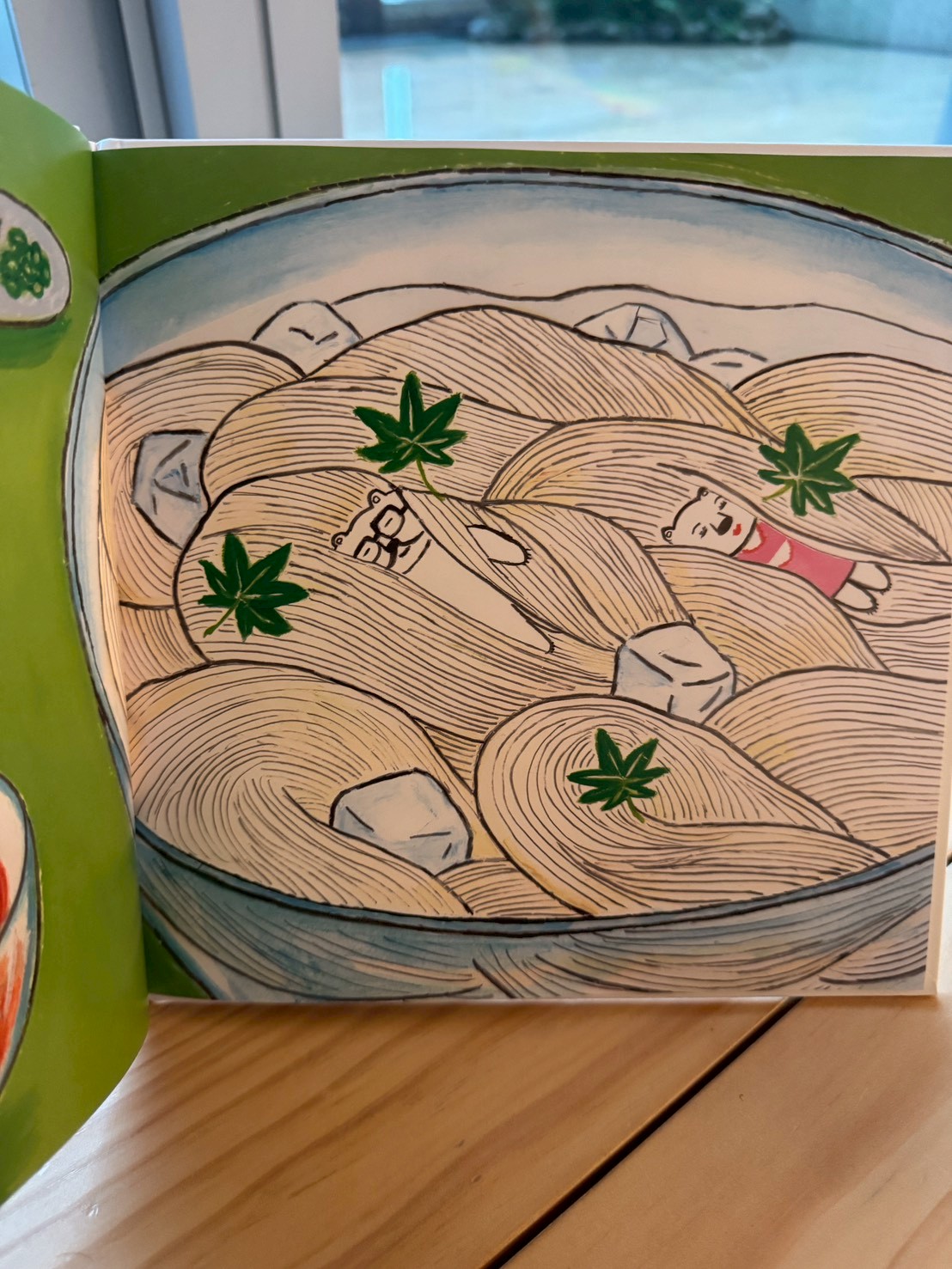 畫面滿滿都是食物,色調很舒服、食物畫得很到位,孩子會一頁比一頁看得更專注。
