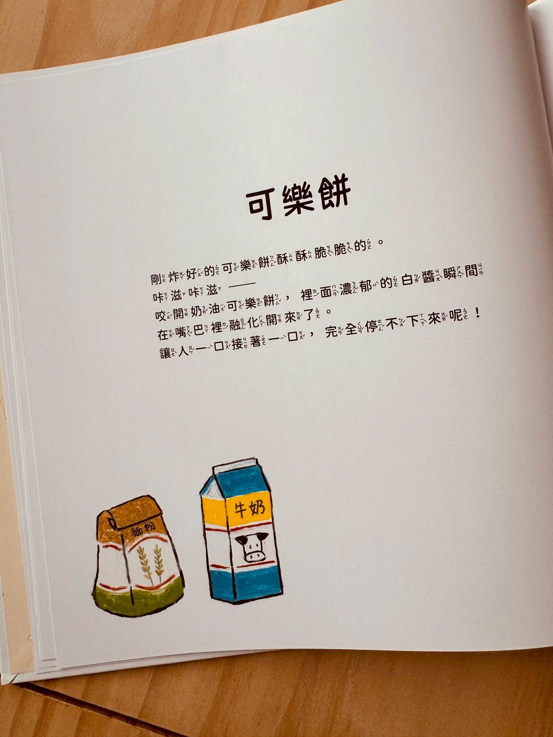 三本書的畫面像把所有形容味道的詞都打開來用,鬆的、滑的、脆的、軟的、熱的、香的……