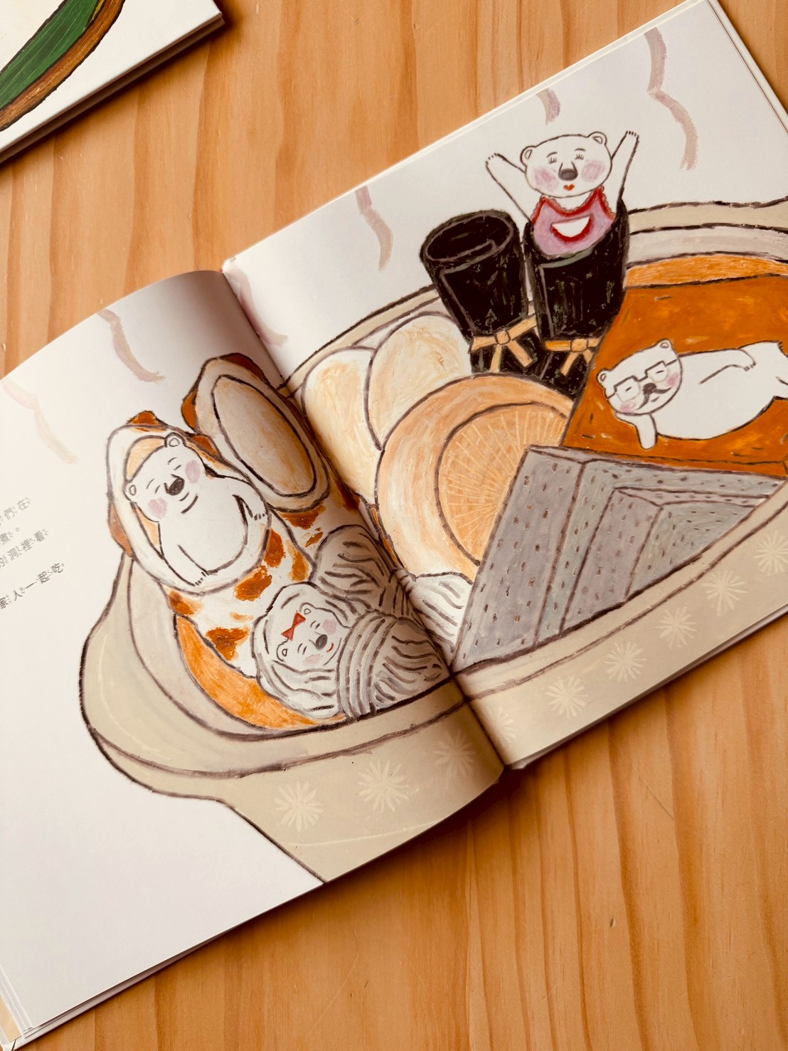 你會看到大白熊泡在湯裡、靠在食物旁邊,好像真的聞得到味道。