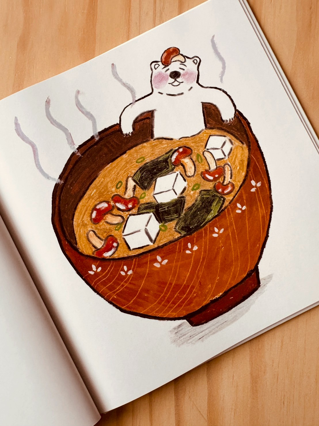 你會看到大白熊泡在湯裡、靠在食物旁邊,好像真的聞得到味道。