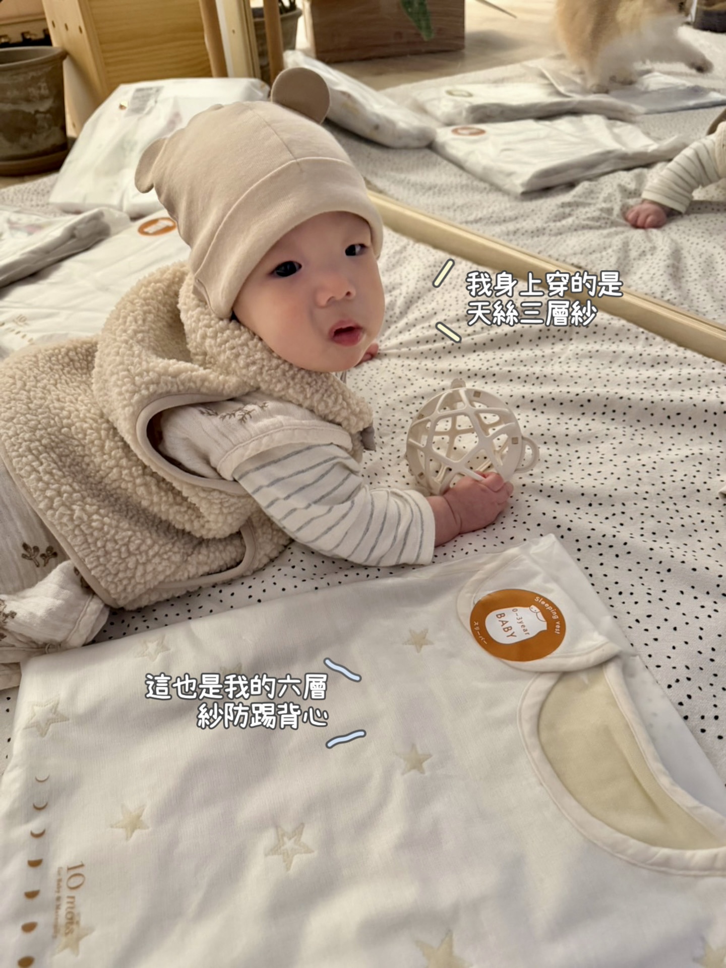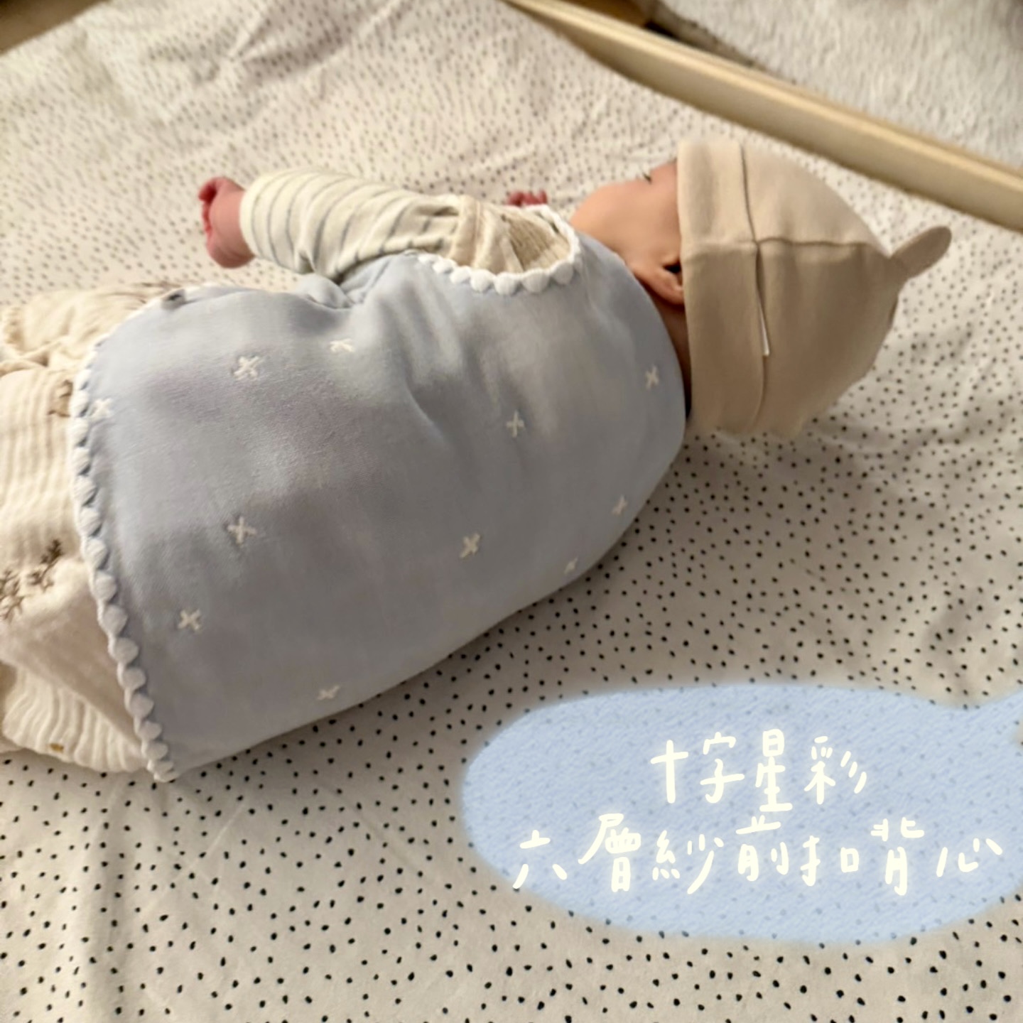 因為我們會想幫寶寶蓋點什麼,就是覺得他有點冷嘛!三層紗真的太薄了,有蓋跟沒蓋差不多😅