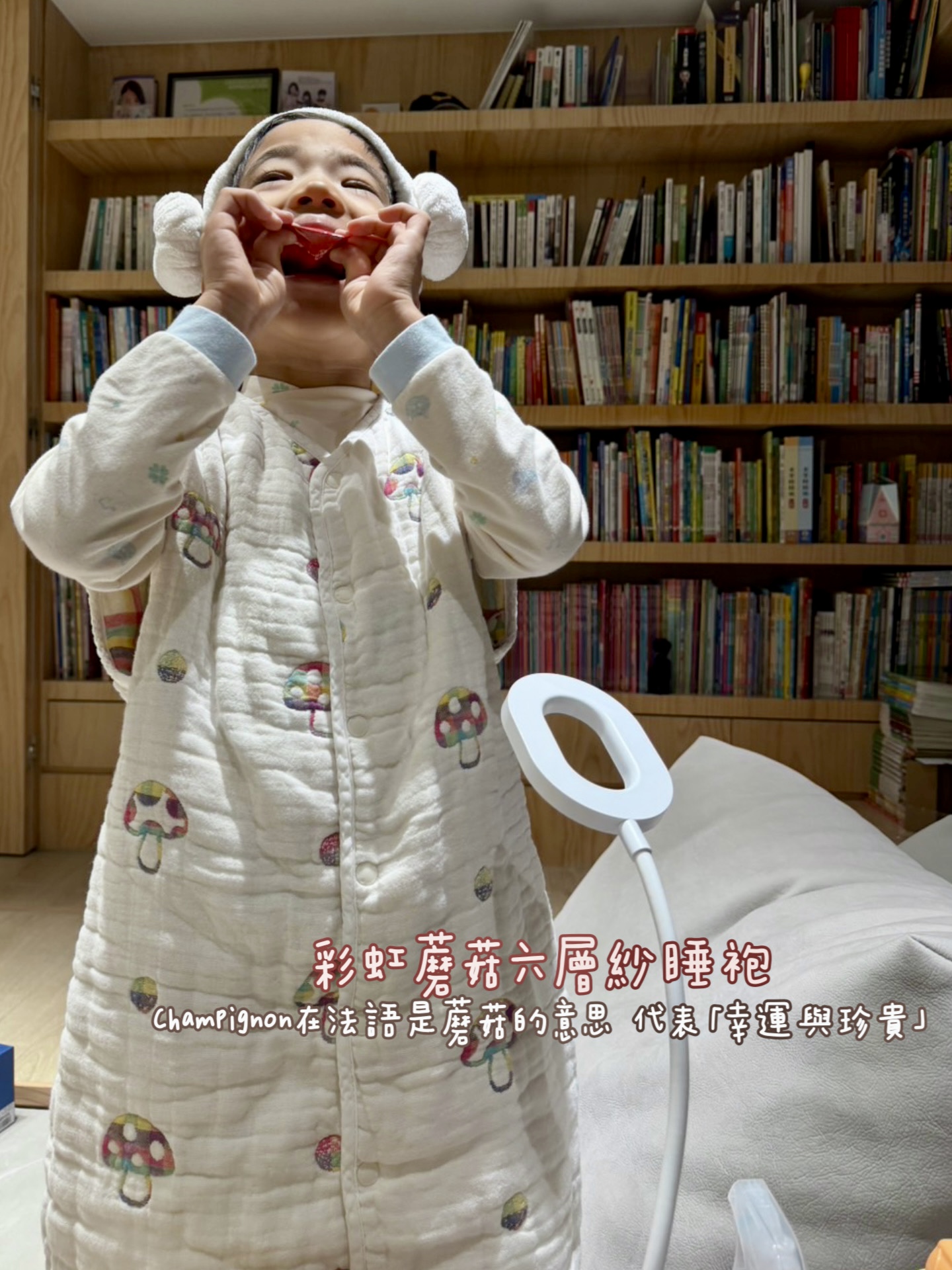 我之前為了安全不蓋被,改開暖氣,但因為 Mumu 有異膚體質,濕度很重要;暖氣一開,臉就會變得太乾紅紅的。為了在「不影響濕度」又能「保暖」還要「安全」之間取得平衡,防踢背心是最安心的選擇了。