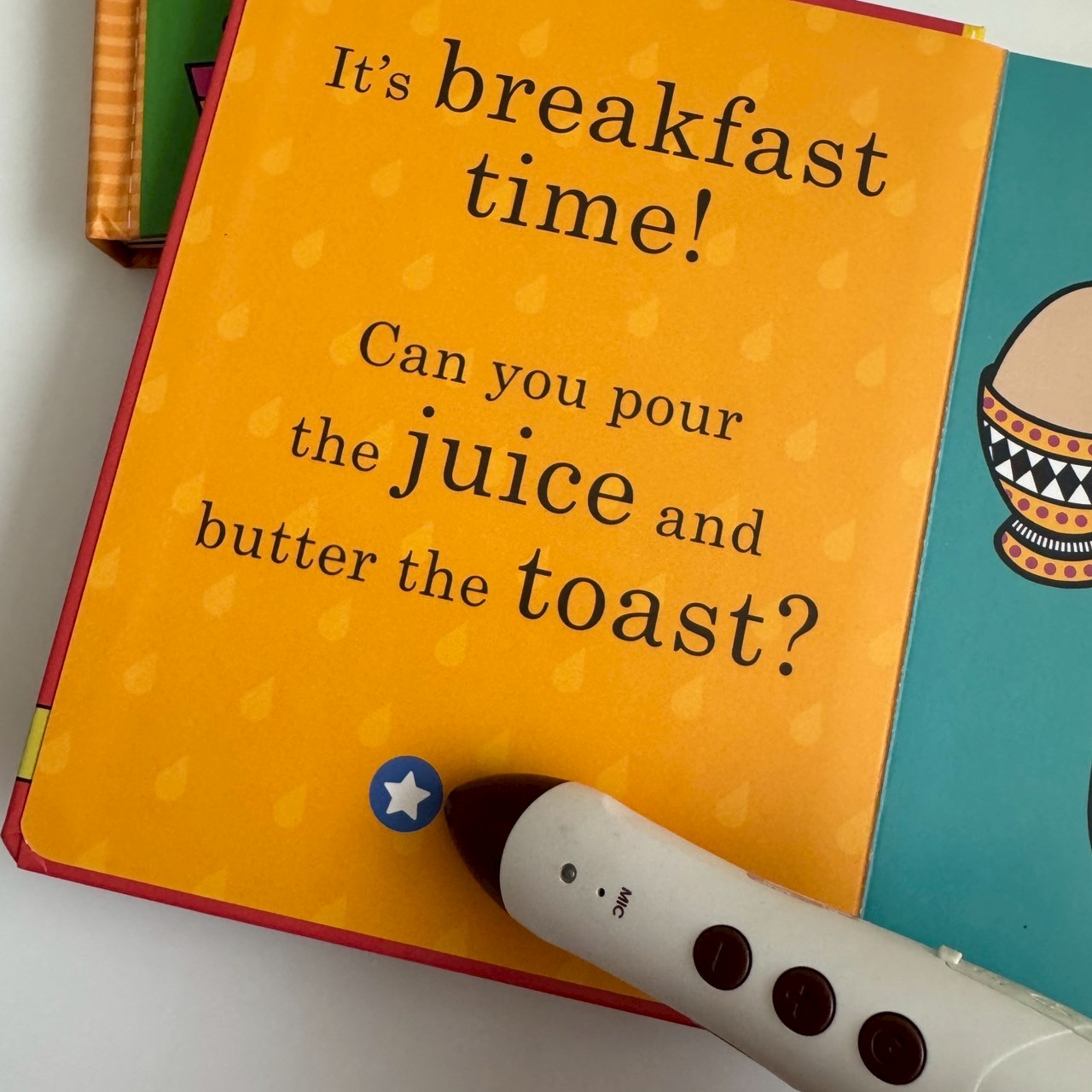 固定開場句型 “It’s breakfast time!” 搭配 “Can you…” 問句,幫孩子建立語言節奏感。反覆聽見、看見、說出,就像玩語言接龍一樣,熟悉的句型幫助孩子慢慢敢開口。