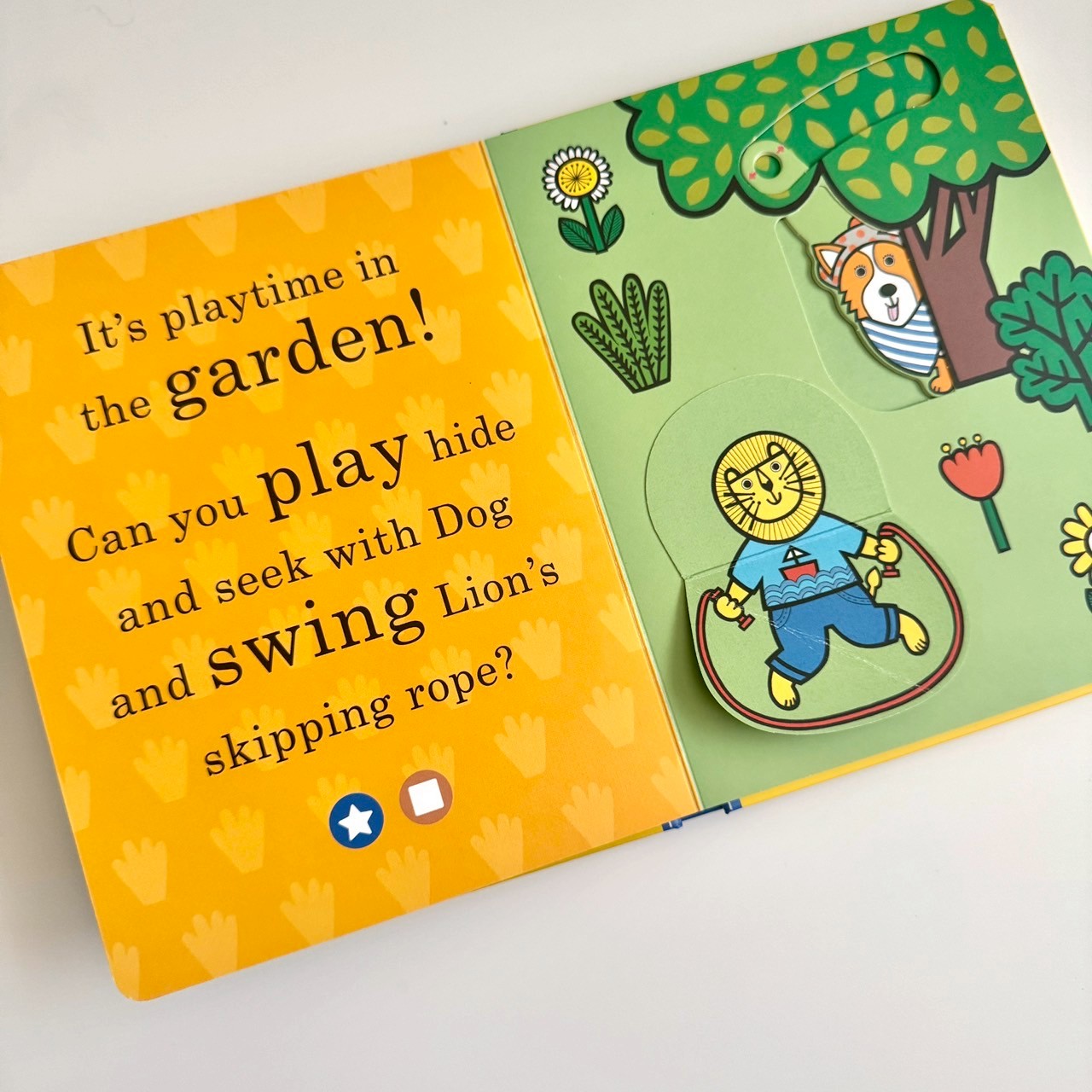 在花園裡玩躲貓貓、跳跳繩,孩子可以操作角色,一邊 swing the rope,一邊學習像 play, hide, swing 這些日常生活常用的動詞。操作 + 聽英文 + 看圖,通通自然連結起來。