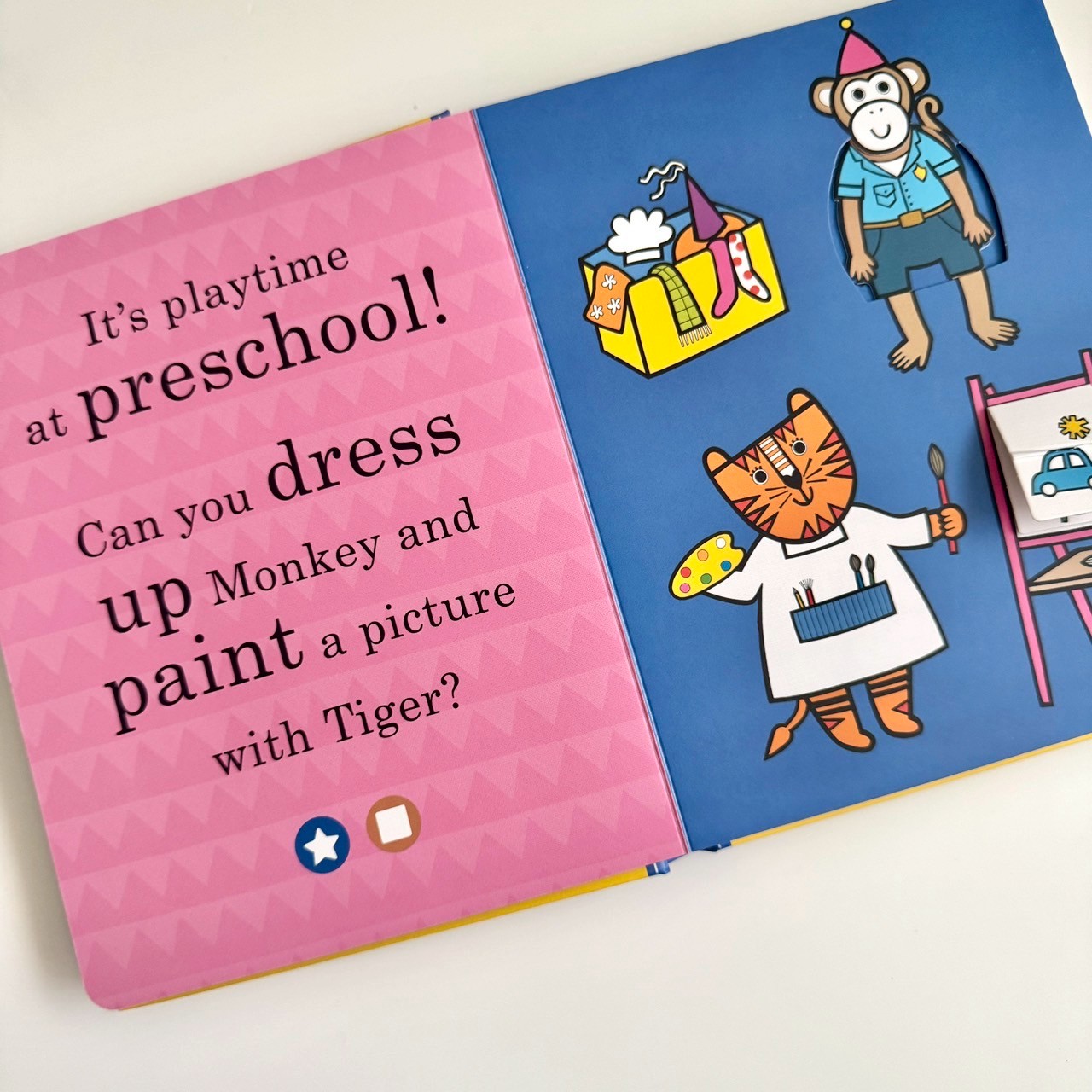 在幼兒園可以做什麼?幫小猴子換裝、和老虎一起畫畫!