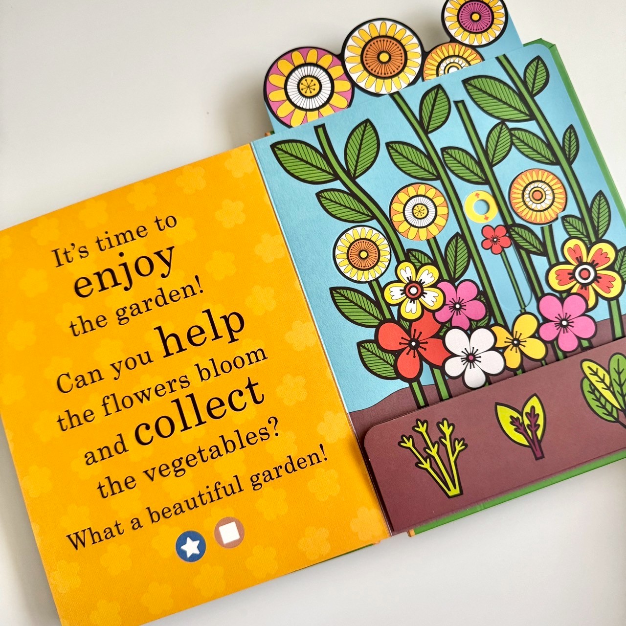 help 和 collect 讓孩子參與到照顧與收穫的過程,往上拉幫助花朵綻放的同時,也能翻動機關採收蔬菜,感受辛勤照顧後的美麗果實。