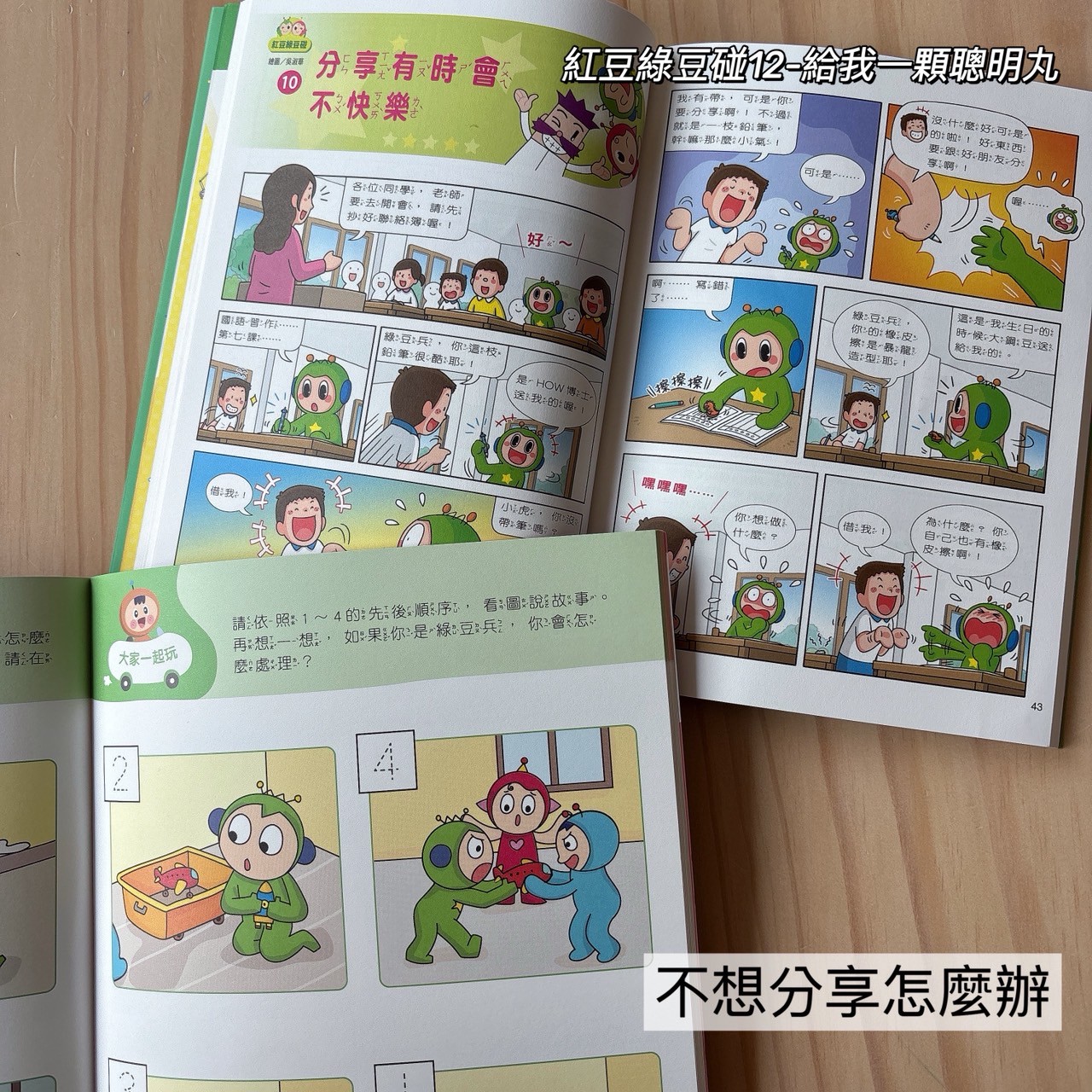 我們很喜歡「我不喜歡」那一頁,搭配幾種情境圖卡,被搶玩具、想自己一個人玩、不想借玩具,用孩子聽得懂的方式說明拒絕、分享、吵架怎麼辦。