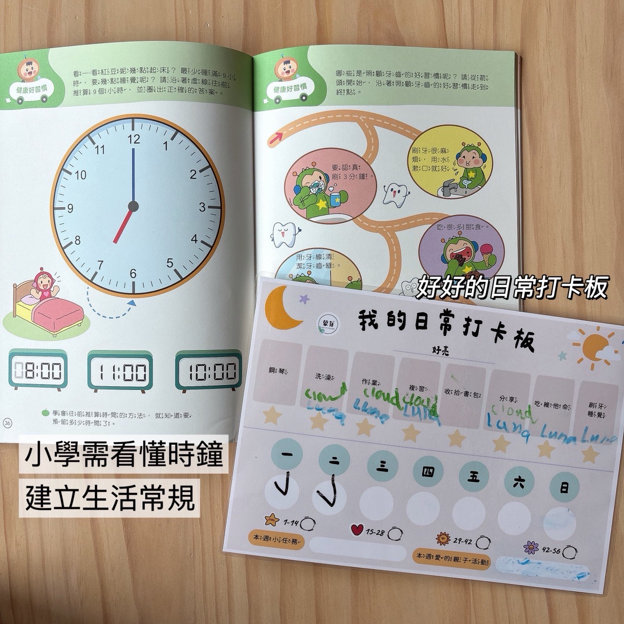 小一上學期就會教到認時鐘,好好現在就開始搭配日常打卡板建立生活常規