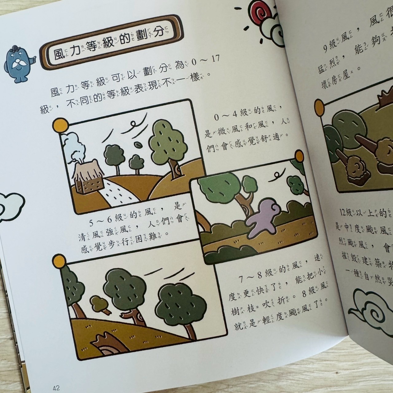 風力也有等級?放颱風假也要看風力?繪本裡用不同場景畫出來,孩子一目了然。
