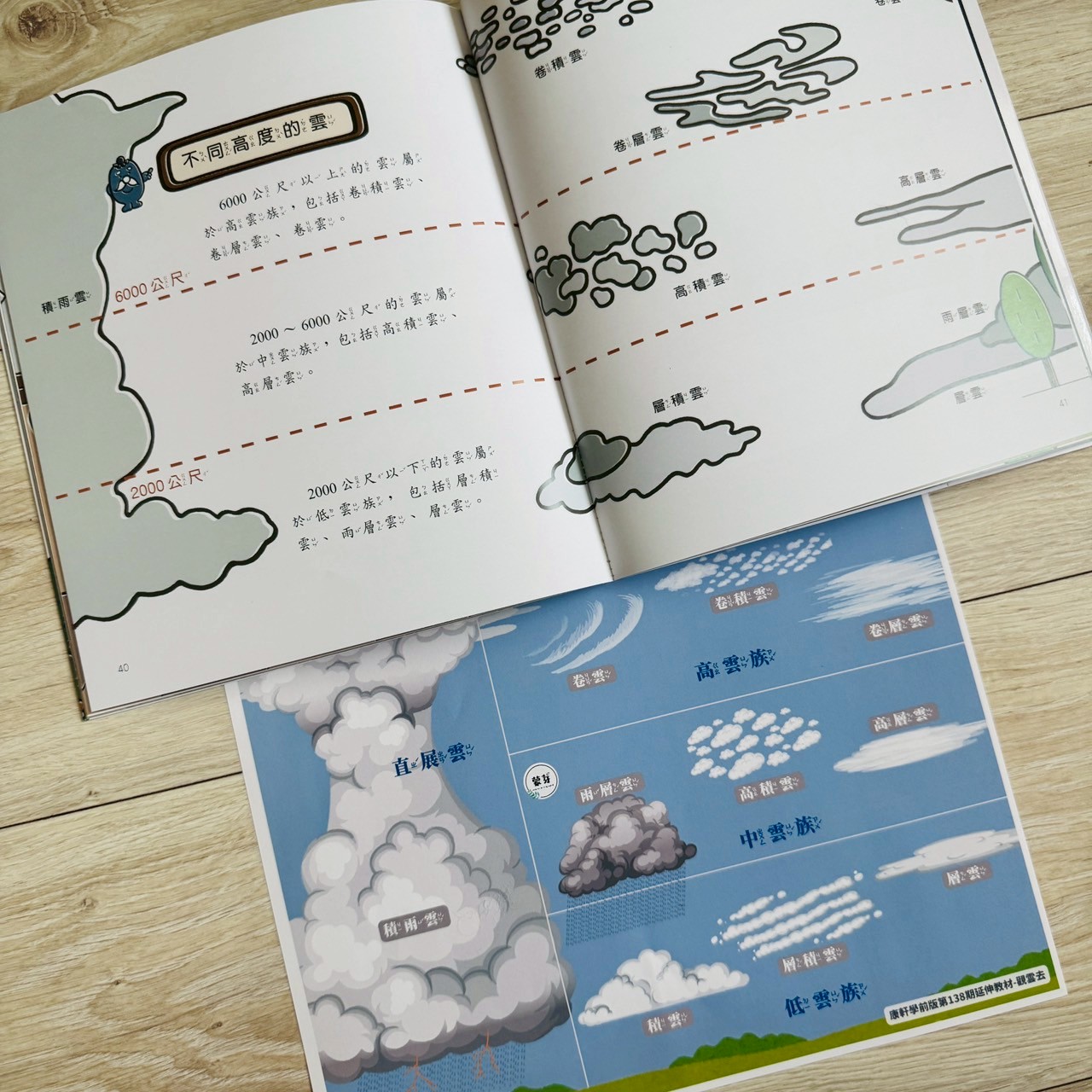 延伸頁有科學圖解,孩子能清楚知道積雲、層雲、卷雲的不同。還可以搭配蒙芽延伸,剛好呼應,這次跟團不管買什麼都送你蒙芽看雲去系列電子延伸。