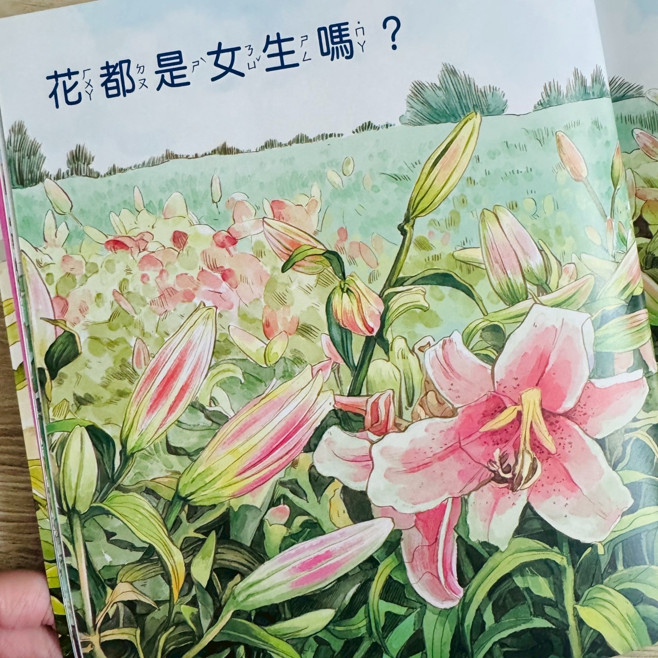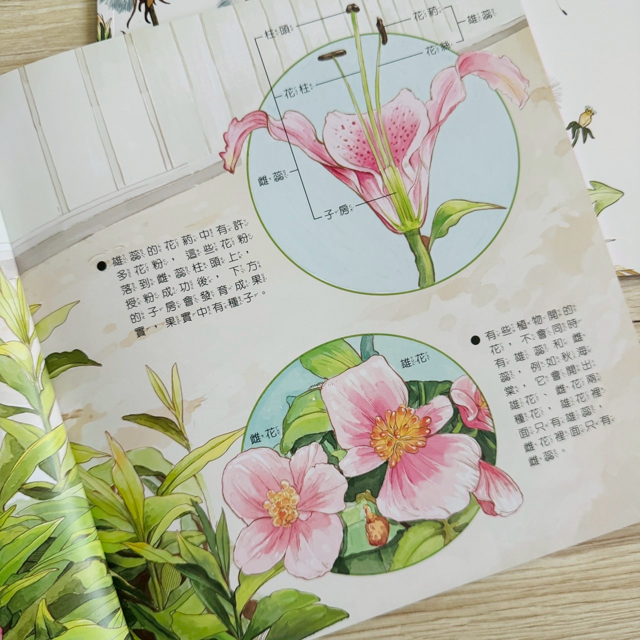 翻頁後出現解剖圖,把雌蕊、雄蕊標示出來。