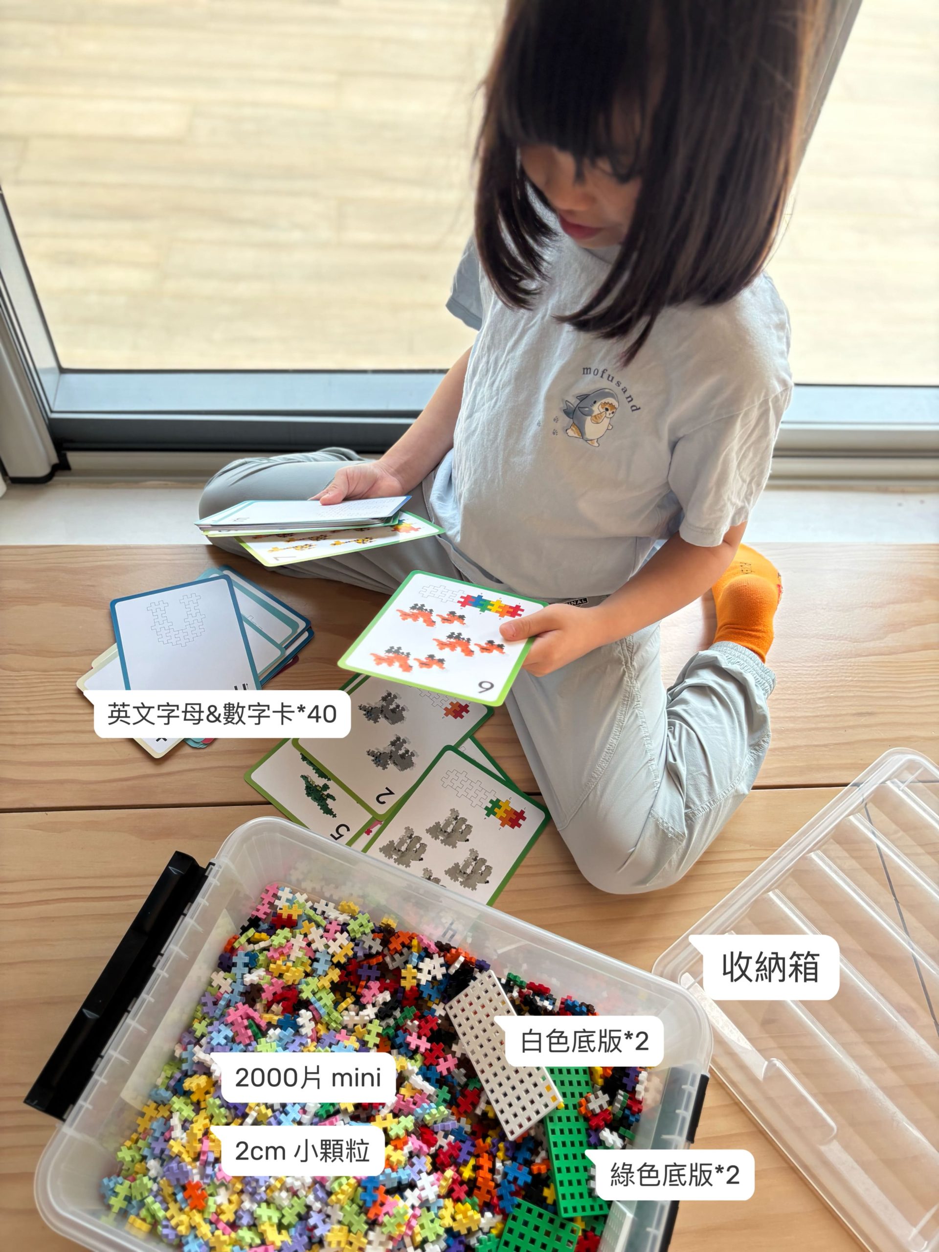 裡面有彩虹色的積木跟夢幻色的積木,還附贈40張字母/數字卡以及專用收納箱,無論是自由拼創作還是照著圖案做都很療癒。