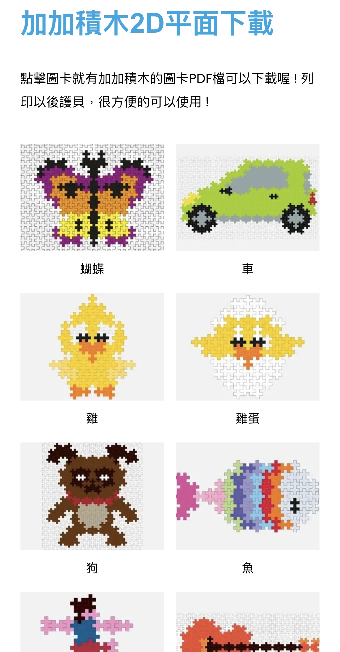 點擊圖卡就有加加積木的圖卡PDF檔可以下載,列印以後護貝,很方便的可以使用 !