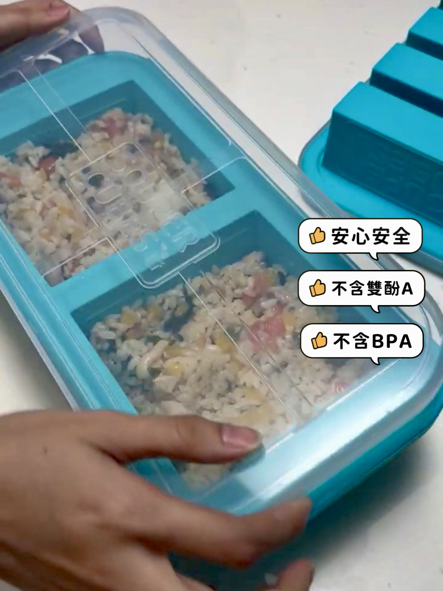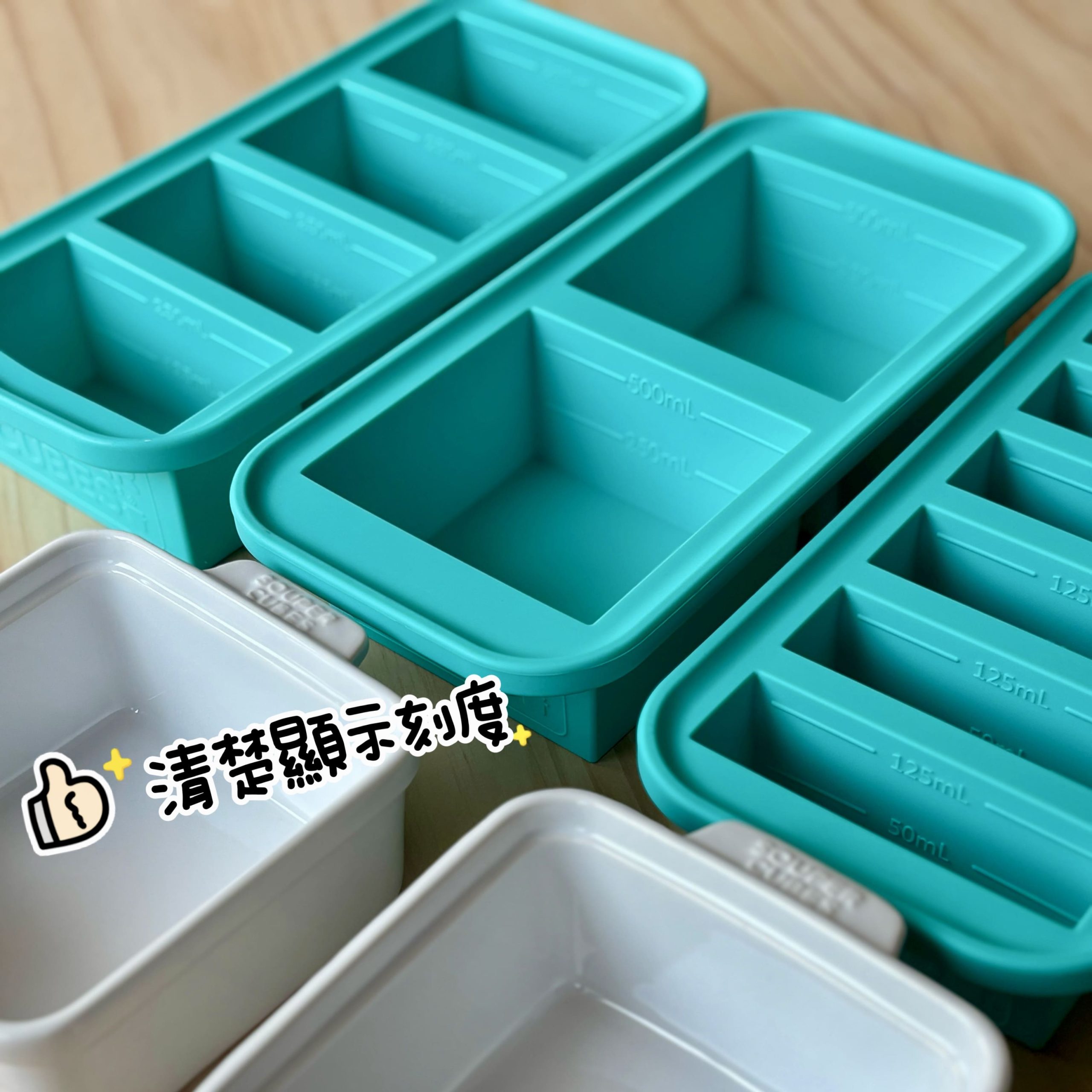 如果你是要做寶寶剛開始吃的「少量泥狀副食品」,Souper Cubes 保鮮盒 10格(30ML/格) 這款可能不是你的首選。 因為它材質非常厚實,內含崁入式鋼緣(這也是它的優點:夠堅固、食材不易灑出!),但做成小格子的時候,矽膠壁會佔掉太多體積,我覺得有點浪費冷凍庫空間😅