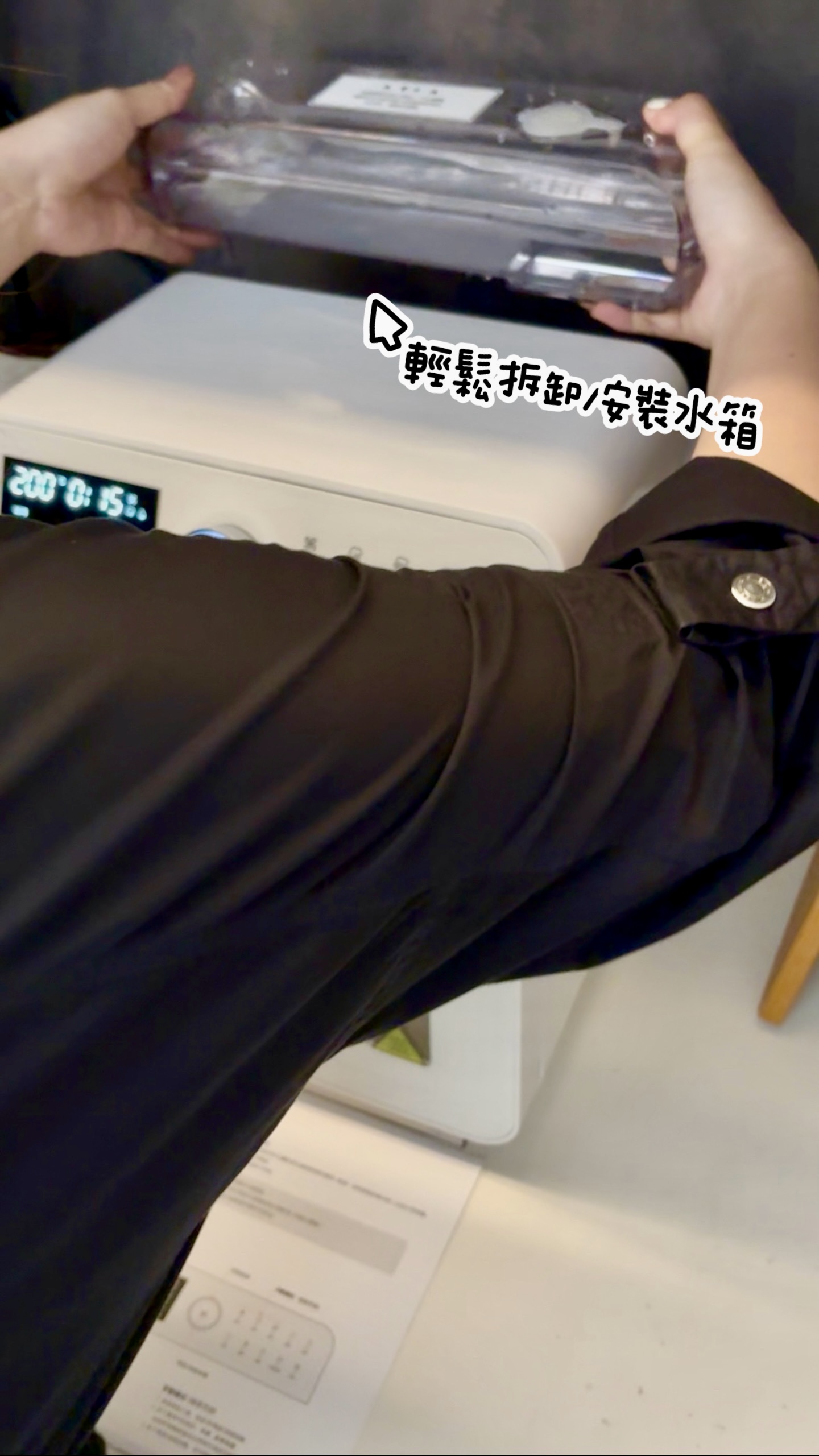另外,VOTO 需要手動在水箱裝水來產生蒸氣,由於水箱設計是上下蓋,這部分在操作時要比較小心從下方扶好,我第一次只抓上面直接分離打翻,濺了我一整身的水😂